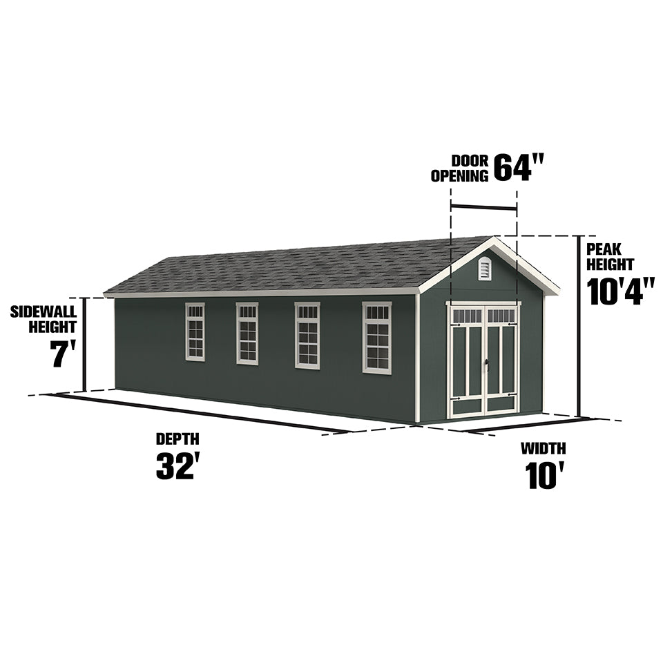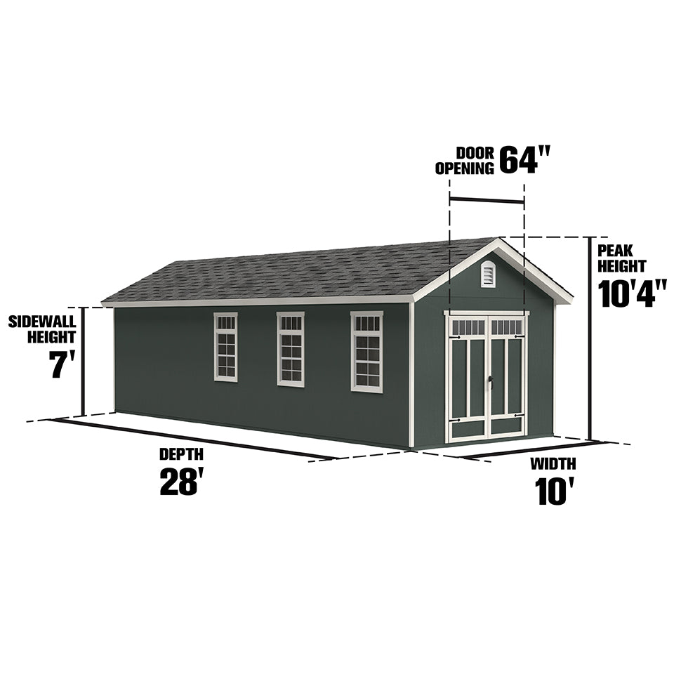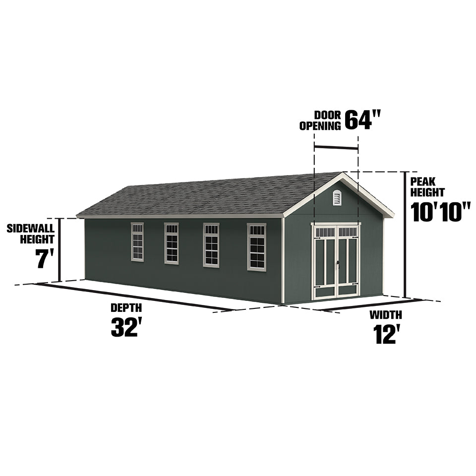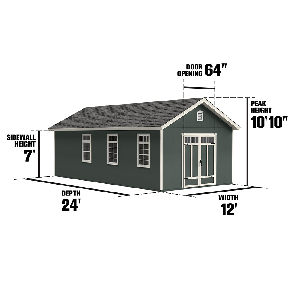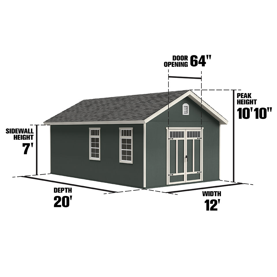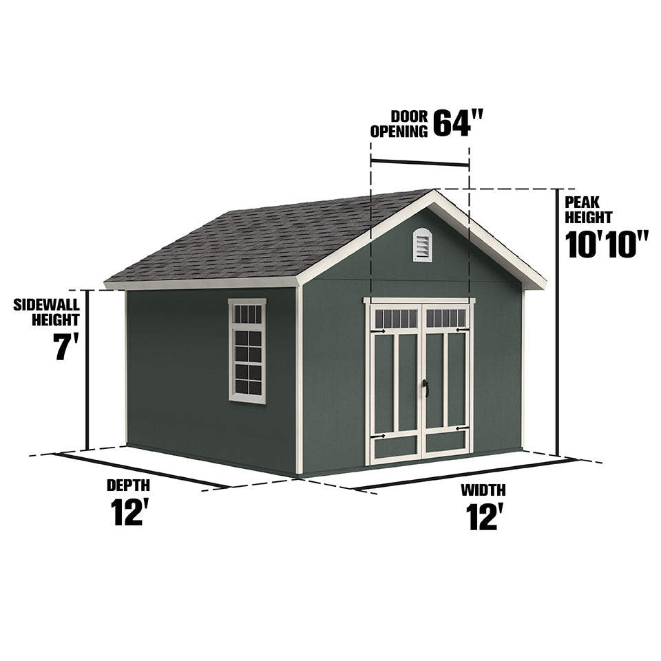 • Actual Interior Dimensions (w x d x h): 12’ x 12’ x 10’10”